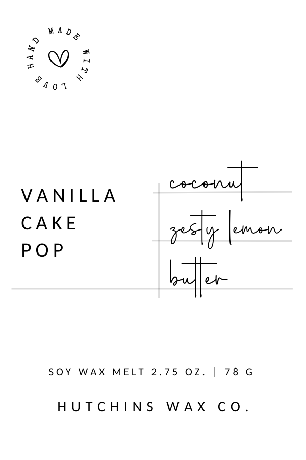 An irresistible, confectionary delight, our Vanilla Cake Pop scent transforms ordinary vanilla into a sweet celebration. Playful top notes of coconut and zesty lemon lift the decadent heart of rich butter and sugar crystals. The luscious vanilla base then completes this scent like a layer of frosting on a freshly baked cake.